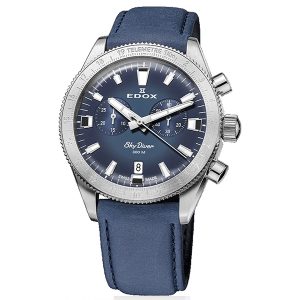 مدلهای جدید Edox Skydiver Chronograph یک نسخه محدود از 1000 قطعه در سراسر جهان هستند. قاب با قطر 40 میلی متر از فولاد ضد زنگ 316 لیتری با دوام استثنایی ساخته شده است که با مقاومت در برابر آب تا عمق 300 متر مشخص شده است. این عمامه عظیم نشان واحد چترباز را بر روی خود دارد. صفحه آبی با یک پنجره تاریخ در ساعت 6 و دو عدد فرعی کرنوگراف توسط یک کریستال یاقوت کبود گنبدی محافظت می شود که توسط یک قاب فولادی با مقیاس تله متریک احاطه شده است. Super-Luminova روی دست ها و شاخص ها به اطمینان از خوانایی عالی در نور کم یا اعماق دریا کمک می کند. قلب ساعت، حرکت کوارتز Edox 101 است. دستبند استیل با بند پروانه ای بسته می شود. به جای جعبه کلاسیک، ساعت در یک کیف مسافرتی چرمی با آرم Edox عرضه می شود. این پکیج ویژه شامل یک بند چرمی آبی نیز می باشد که به زیبایی با رنگ صفحه هماهنگ می شود. یک ساعت نظامی آماده برای رویارویی با هر ماجراجویی.