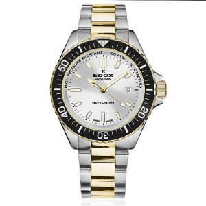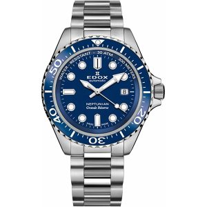 این ساعت از جنس استیل ضد زنگ با سایز 42 میلی متر ساخته شده است.صفحه آبی توسط کریستال یاقوت کبود به ضخامت 3 میلی متر محافظت می شود که توسط یک قاب سرامیکی بسیار مقاوم در برابر خش احاطه شده است.مقاومت در برابر آب تا 300 متر است و صفحه نشانگر نپتون است که خدای رومی دریاها بود.SuperLuminova X1 روی دست ها و شاخص ها به اطمینان از خوانایی عالی حتی در نور کم یا اعماق دریا کمک می کند.قلب ساعت اتوماتیک Edox Neptunian Grande Réserve Date Automatic حرکت اتوماتیک جدید Edox 808 با ذخیره انرژی 68 ساعته است که بر اساس کالیبر La Joux-Perret G100 ساخته شده است.یک ساعت نظامی آماده برای رویارویی با هر ماجراجویی.