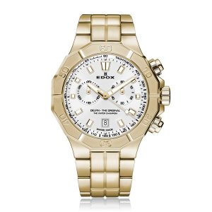 مدلهای جدید Edox Skydiver Chronograph یک نسخه محدود از 1000 قطعه در سراسر جهان هستند. قاب با قطر 40 میلی متر از فولاد ضد زنگ 316 لیتری با دوام استثنایی ساخته شده است که با مقاومت در برابر آب تا عمق 300 متر مشخص شده است. این عمامه عظیم نشان واحد چترباز را بر روی خود دارد. صفحه قهوه ایی با یک پنجره تاریخ در ساعت 6 و دو عدد فرعی کرنوگراف توسط یک کریستال یاقوت کبود گنبدی محافظت می شود که توسط یک قاب فولادی با مقیاس تله متریک احاطه شده است. Super-Luminova روی دست ها و شاخص ها به اطمینان از خوانایی عالی در نور کم یا اعماق دریا کمک می کند. قلب ساعت، حرکت کوارتز Edox 101 است. دستبند استیل با بند پروانه ای بسته می شود. به جای جعبه کلاسیک، ساعت در یک کیف مسافرتی چرمی با آرم Edox عرضه می شود. این پکیج ویژه شامل یک بند چرمی قهوه ایی نیز می باشد که به زیبایی با رنگ صفحه هماهنگ می شود. یک ساعت نظامی آماده برای رویارویی با هر ماجراجویی.