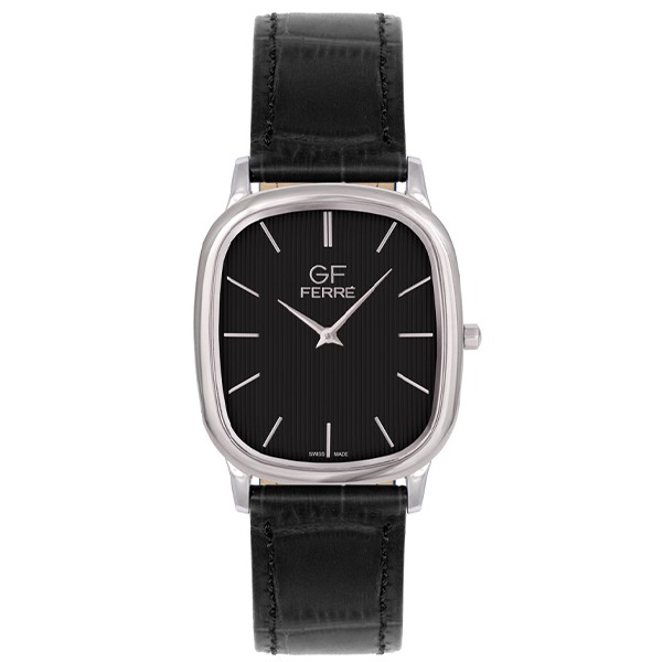 دسته: GF FERRE, برند مردانه, بند چرم, ضد آب, قاب مستطیل, کوارتز