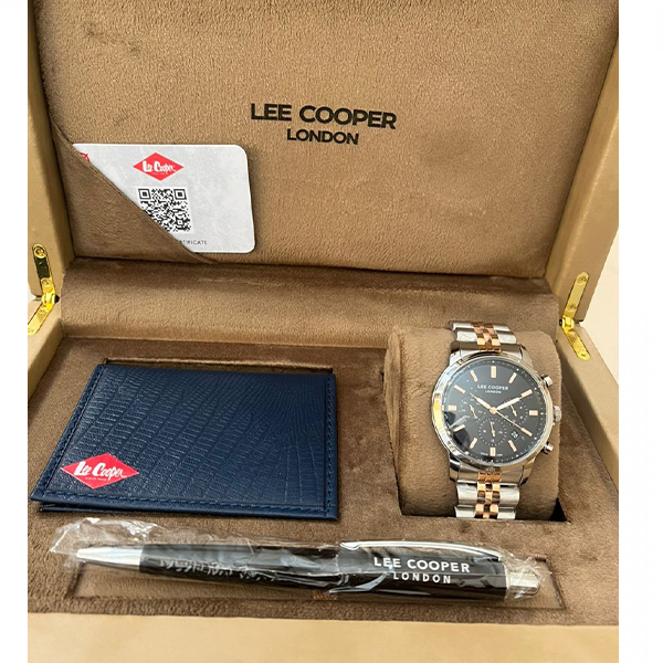 دارای یک کیف پول چرم و یک خودکار داخل جعبه